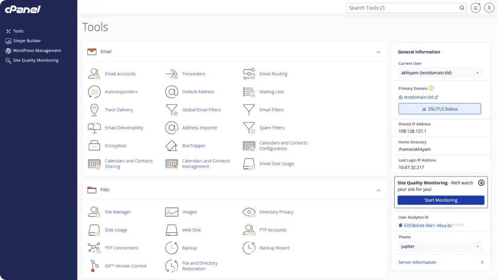 Sementara itu, cPanel mungkin terlihat lebih kompleks. Meski begitu, interface-nya tetap user-friendly dan intuitif. Maka dari itu, pengalaman penggunaannya tetap mudah dan terkesan lebih profesional.