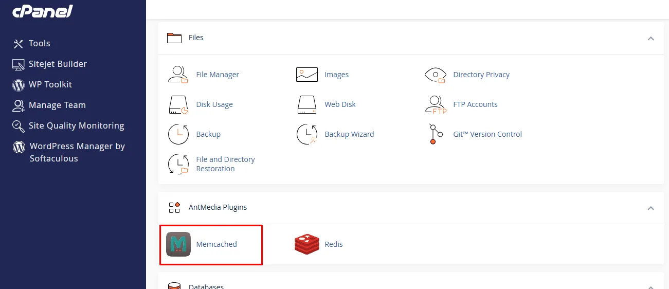 Setelah login, cari menuĀ ANTMEDIA PLUGINSĀ dan pilih opsiĀ Memcached.