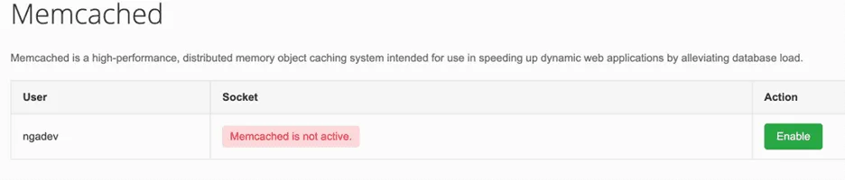 Klik tombolĀ EnableĀ untuk mengaktifkan Memcached.