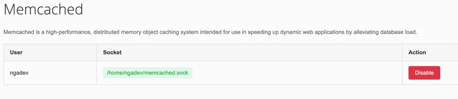 /home/USER/memcached.sockĀ (Contoh: untuk userĀngadev, path akan menjadiĀ/home/ngadev/memcached.sock).