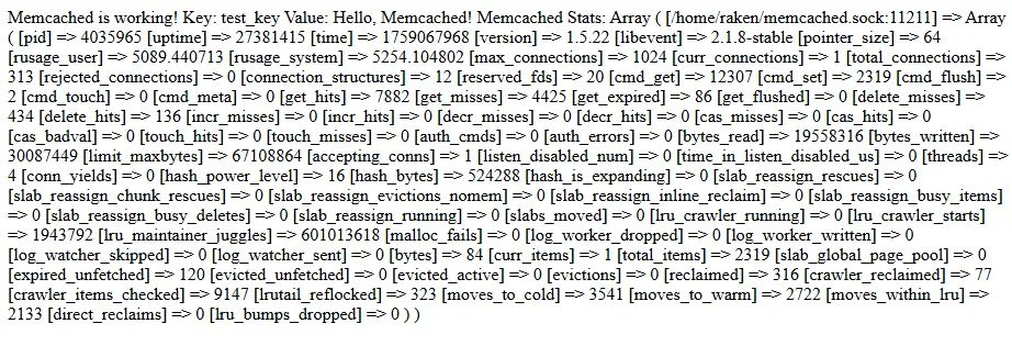Memcached kini telah berhasil diinstal dan terhubung dengan aplikasi PHP Anda. Anda bisa menggunakan Memcached untuk caching, optimasi performa aplikasi, atau pengelolaan data sementara.