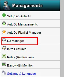 Silahkan login terlebih dahulu ke panel WHMSonic. Setelah berada di panel tersebut pilih menu DJ Manager yang berada di dalam menu Management.