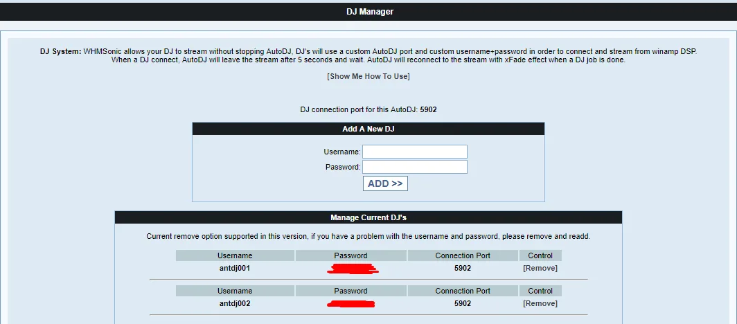 Silahkan buat user DJ yang anda inginkan. User DJ ini tidak dibatas jadi anda bisa membuatnya berapapun yang anda mau. List user DJ yang sudah anda buat akan terlihat dibawahnya.