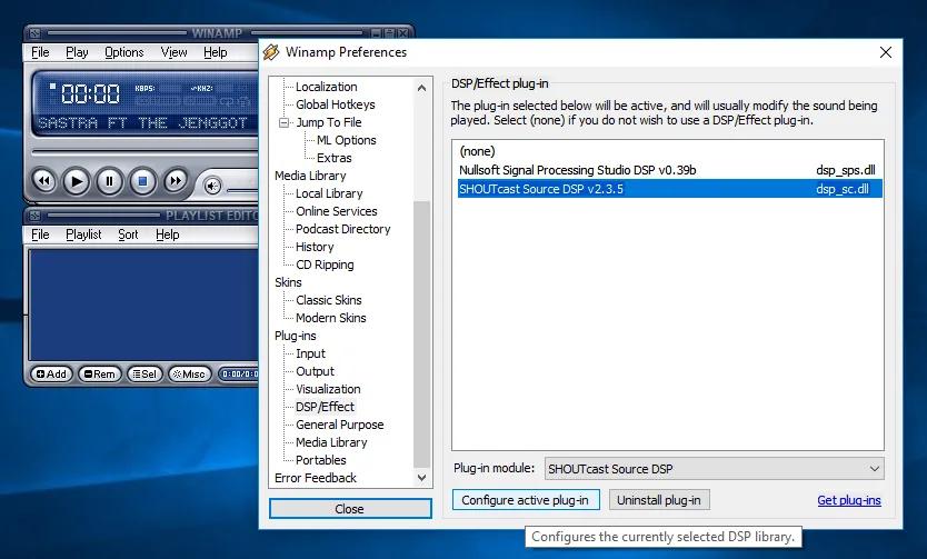 Jalankan winamp, kemudian tekan Ctrl+P atau pilih menu Preferences -> Plug-ins - > DSP/Effect.