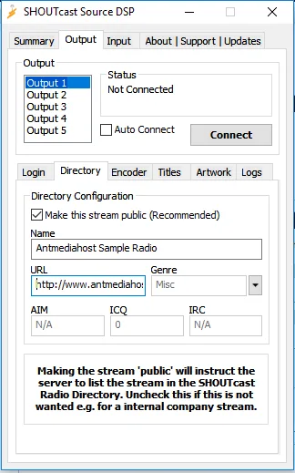 Klik tab Directory dan isi informasi mengenai Radio Streaming anda.