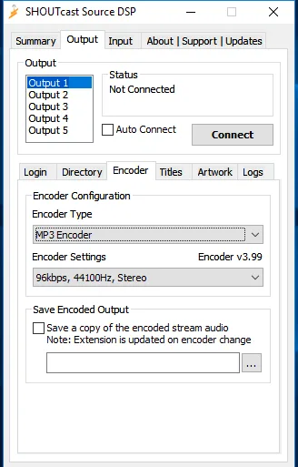 Klik tab Encoder. Untuk Encoder type pilih Mp3 dan untuk Encoder Setting, bitratenya biarkan dulu default jika nanti ketika sudah aktif terasa suara yang dihasilkan tidak enak didengar silahkan dirubah bitrate-nya disini.