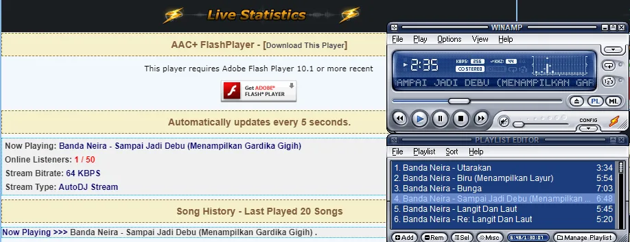 Winamp – untuk memutar musik dan melakukan siaran live.