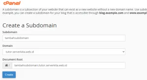 • Pada kolom pertama masukkan nama domain subdomain yang ingin anda buat.