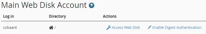 Pada artikel kali ini kami akan menjelaskan fungsi fitur web disk pada cPanel.Web Disk adalah salah satu fitur cPanel yang berfungsi untuk memanajemen data pada akun hosting, dan anda dapat mentransfer, mengedit, menghapus file pada akun hosting.
