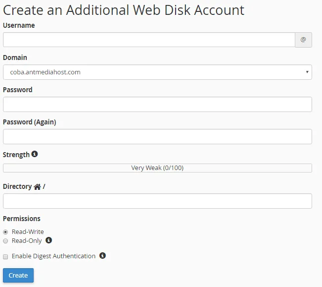 4. untuk membuat akun baru langsung saja isi kolom dibawah Create an Additional Web Disk Account.Ket :