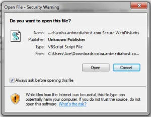 8. Setelah itu jalankan file .vbs nya, klik open.
