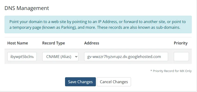 Masukan record DNS yang telah anda dapatkan dari dashboard blogger tadi, dibawah ini adalah contohnya :