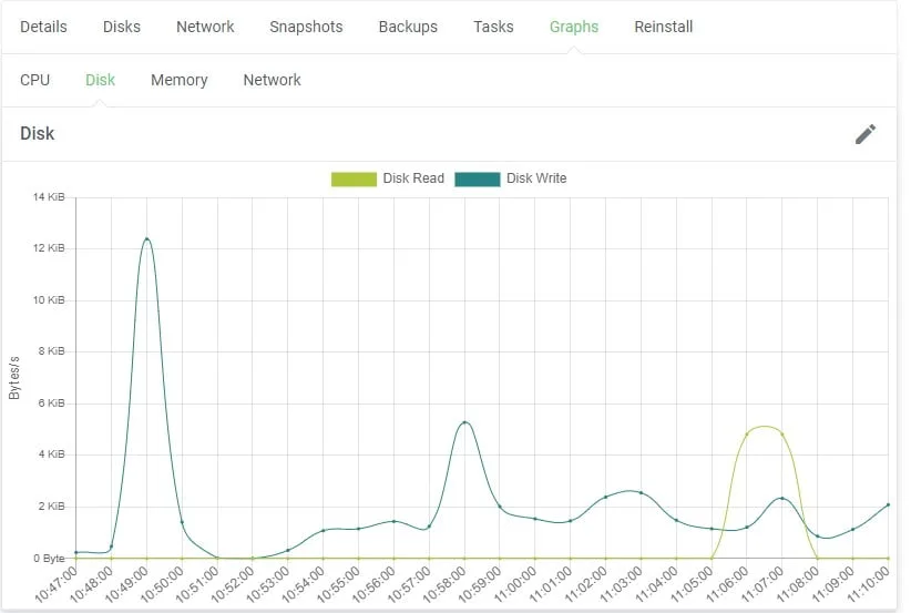 Menu ini berfungsi untuk melihat grafik CPU, Disk, Memory, dan Network.