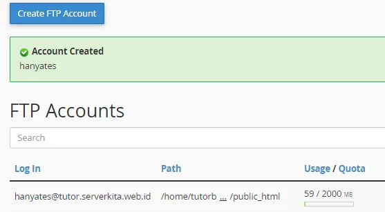 Demikian tutorial Membuat Akun FTP Pada cPanel.