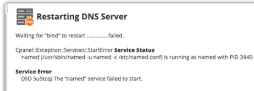 Saat akun domain di-restore, konfigurasi zona DNS lama tidak dibersihkan, menyebabkan konflik saat named dijalankan kembali.