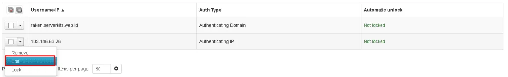 Setelah berhasil menambahkan user by Authenticating Domain, selanjutnya Klik Edit pada Drop Down di sebelah kiri username