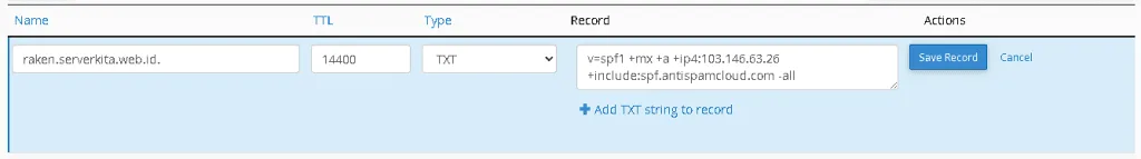 1. Arahkan SPF ke spam expert dengan record seperti berikut : v=spf1 +mx +a +ip4:ip-server +include:spf.antispamcloud.com -all