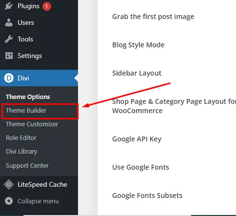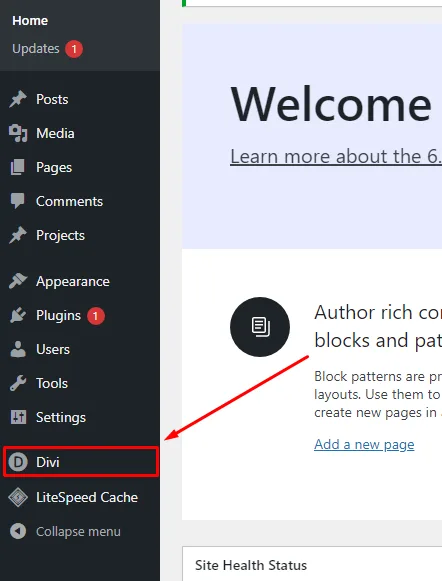 2. Klik ke menu Divi