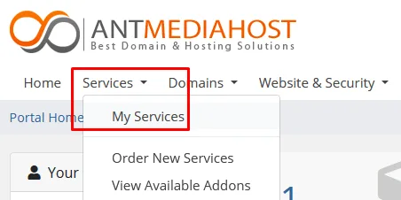 Login ke dalam Client Area sobat : https://portal.antmediahost.com/clientarea.php, lalu Pilih Service > My Services untuk melihat layanan VPS KVM yang sobat miliki :